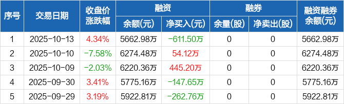 博力威:融资净偿还611.5万元,融资余额5662.98万元(10-13)