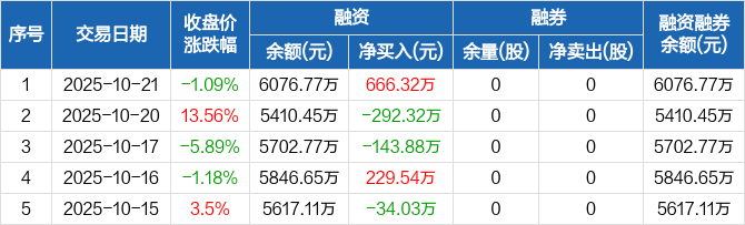 博力威:融资净买入666.32万元,融资余额6076.77万元(10-21)