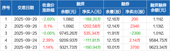 三一重能:融资净偿还188.26万元,融资余额1.08亿元(09-29)
