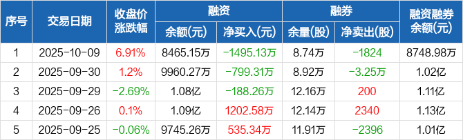 三一重能:连续3日融资净偿还累计2482.7万元(10-09)
