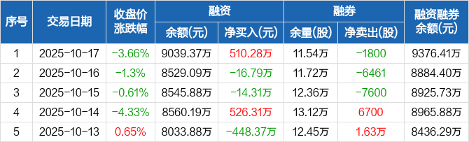 三一重能:融资净买入510.28万元,融资余额9039.37万元(10-17)