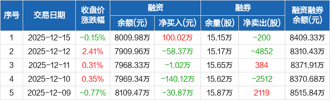 三一重能:融资净买入100.02万元,融资余额8009.98万元(12-15)