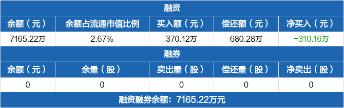 富淼科技:融资净偿还310.16万元,融资余额7165.22万元(10-10)