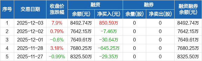 富淼科技:融资净买入850.59万元,融资余额8492.74万元(12-03)