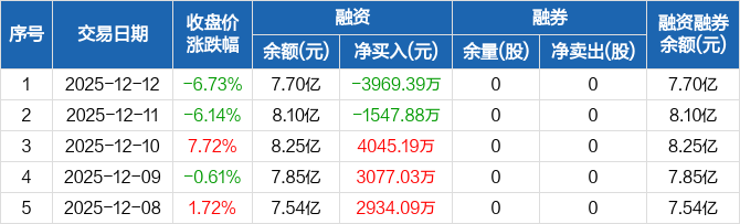 华盛锂电:融资净偿还3969.39万元,融资余额7.7亿元(12-12)