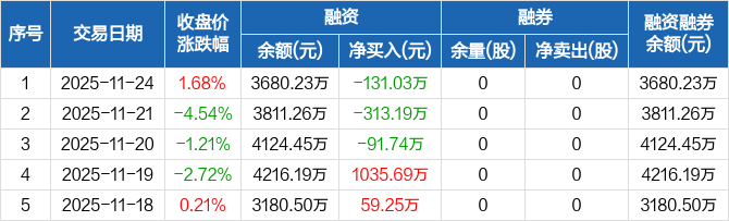 明志科技:连续3日融资净偿还累计535.96万元(11-24)