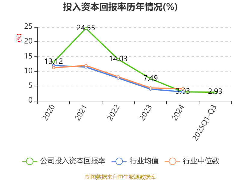 盈利能力方面, 2025年前三季度公司加权平均净资产收益率为3.97%,同比上升0.6个百分点。公司2025年前三季度投入资本回报率为2.93%,较上年同期上升0.49个百分点。