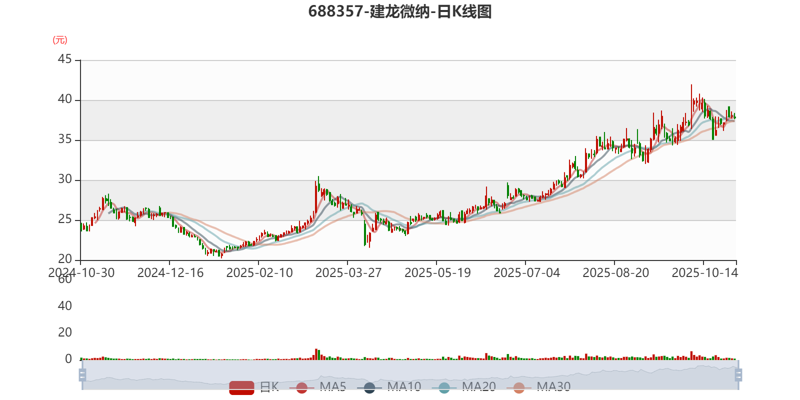 以10月29日收盘价计算,建龙微纳目前市盈率(TTM)约为43.46倍,市净率(LF)约2.03倍,市销率(TTM)约4.7倍。