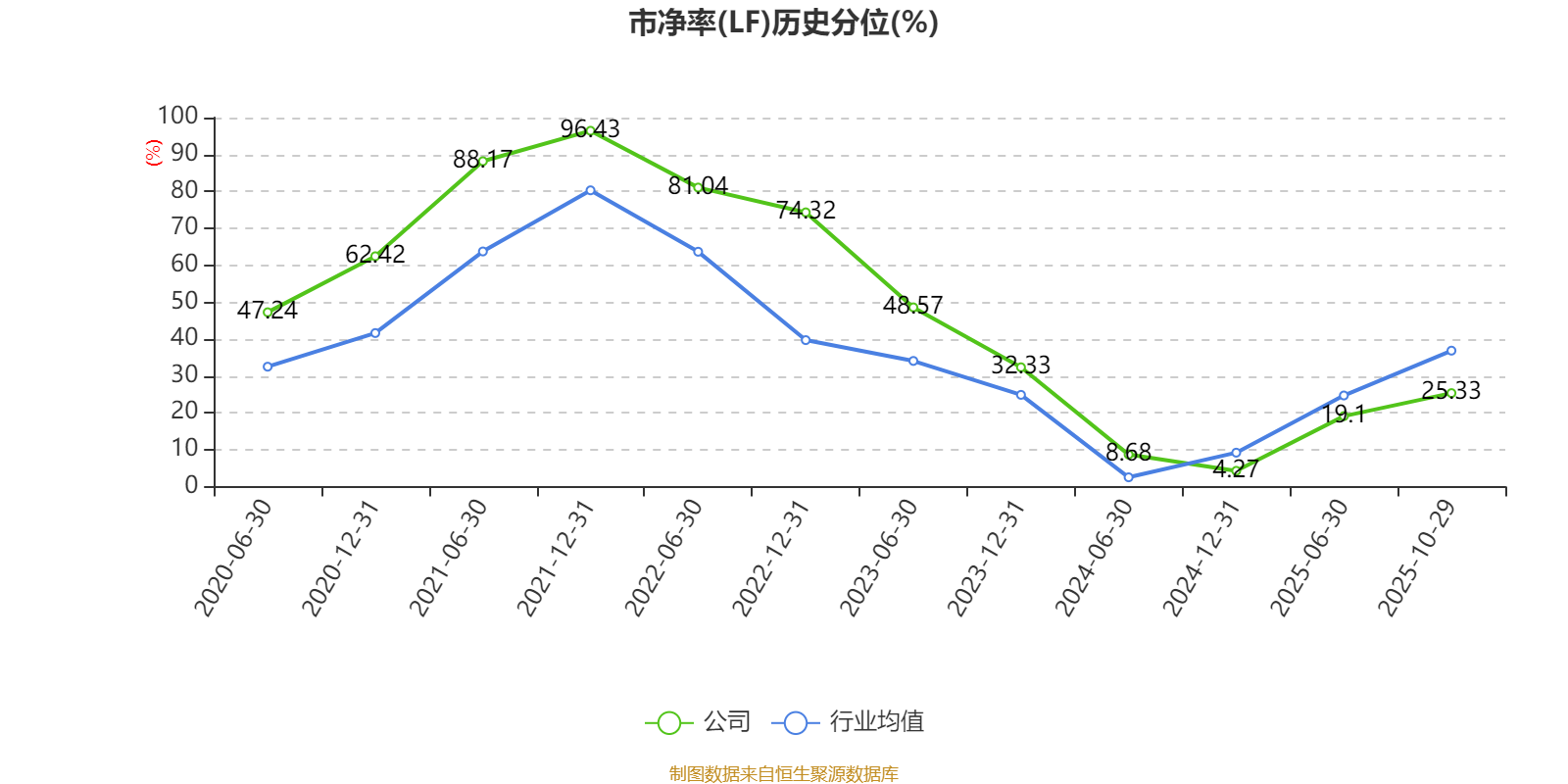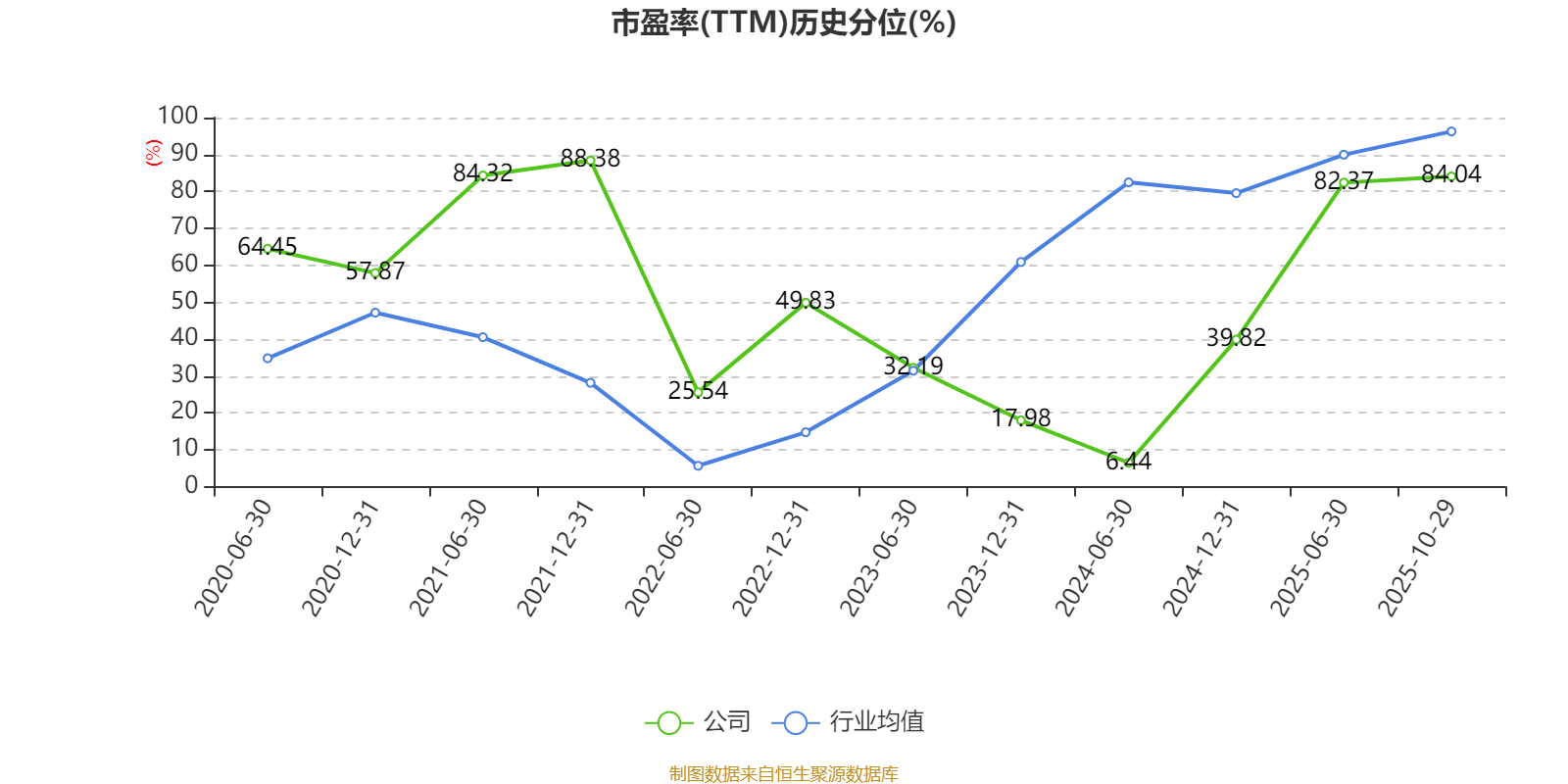 市盈率、市净率为负时,不显示当期分位数,会导致折线图中断。