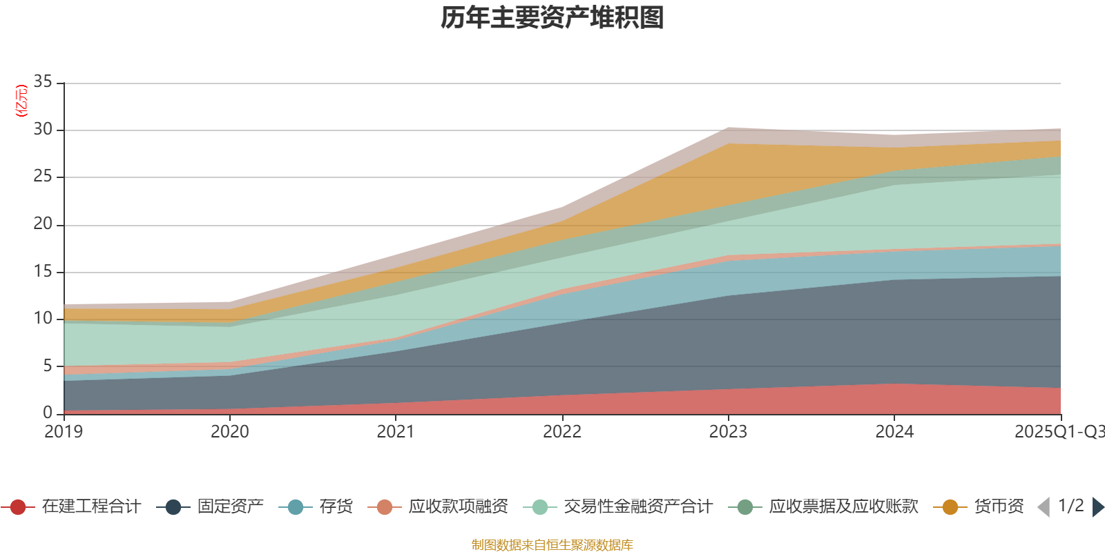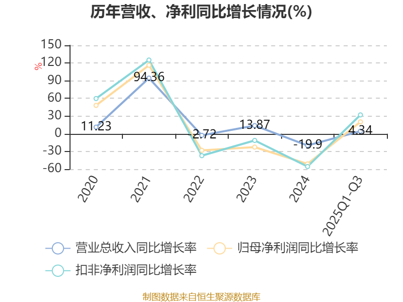 资产重大变化方面,截至2025年三季度末,公司货币资金较上年末减少31.5%,占公司总资产比重下降2.74个百分点;固定资产较上年末增加7.59%,占公司总资产比重上升1.92个百分点;在建工程合计较上年末减少14.32%,占公司总资产比重下降1.77个百分点;应收票据及应收账款较上年末增加26.82%,占公司总资产比重上升1.24个百分点。