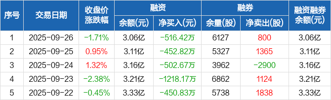 三孚新科:连续7日融资净偿还累计4943.6万元(09-26)