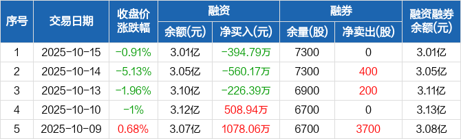 三孚新科:连续3日融资净偿还累计1181.34万元(10-15)