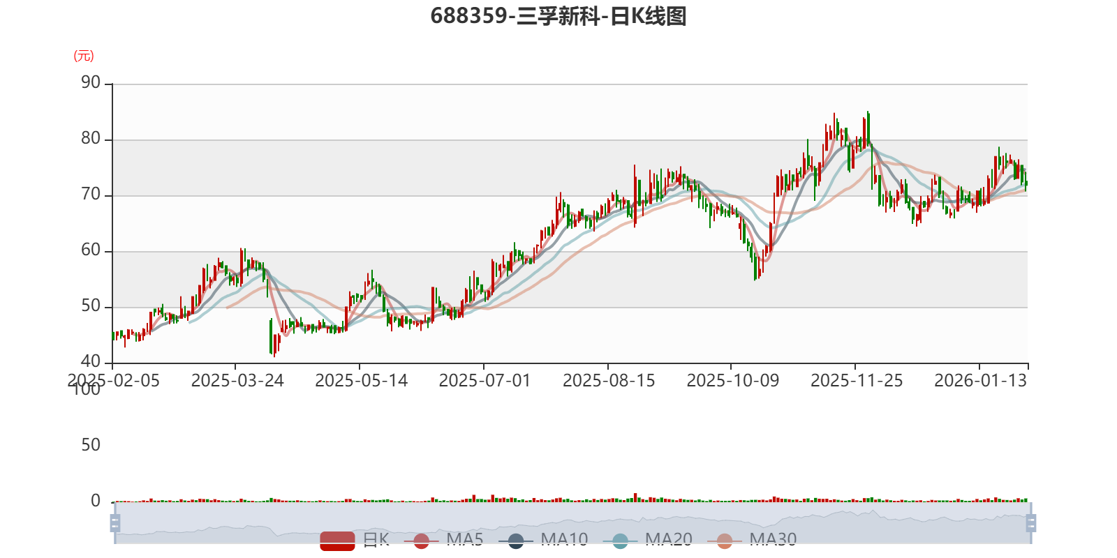 中证智能财讯三孚新科(688359)1月29日晚间披露2025年度业绩预告,预计2025年归母净利润亏损4200万元至5000万元,上年同期亏损1258.17万元;扣非净利润亏损5300万元至6300万元,上年同期亏损2894.85万元。以最新收盘价计算,市净率(LF)约11.43倍,市销率(TTM)约13.25倍。