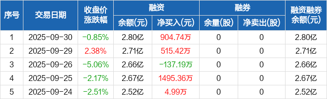 德马科技:融资余额2.8亿元,创历史新高(09-30)