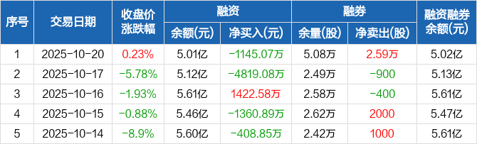 甬矽电子:融资净偿还1145.07万元,融资余额5.01亿元(10-20)