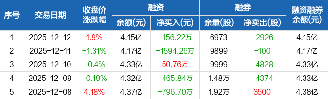 甬矽电子:融资净偿还156.22万元,融资余额4.15亿元(12-12)