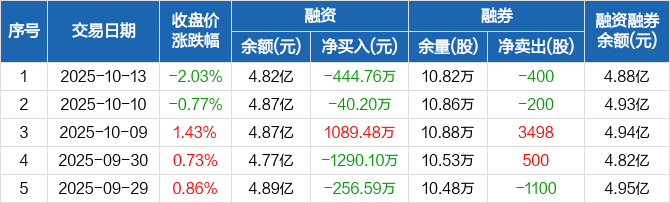 华熙生物:融资净偿还444.76万元,融资余额4.82亿元(10-13)