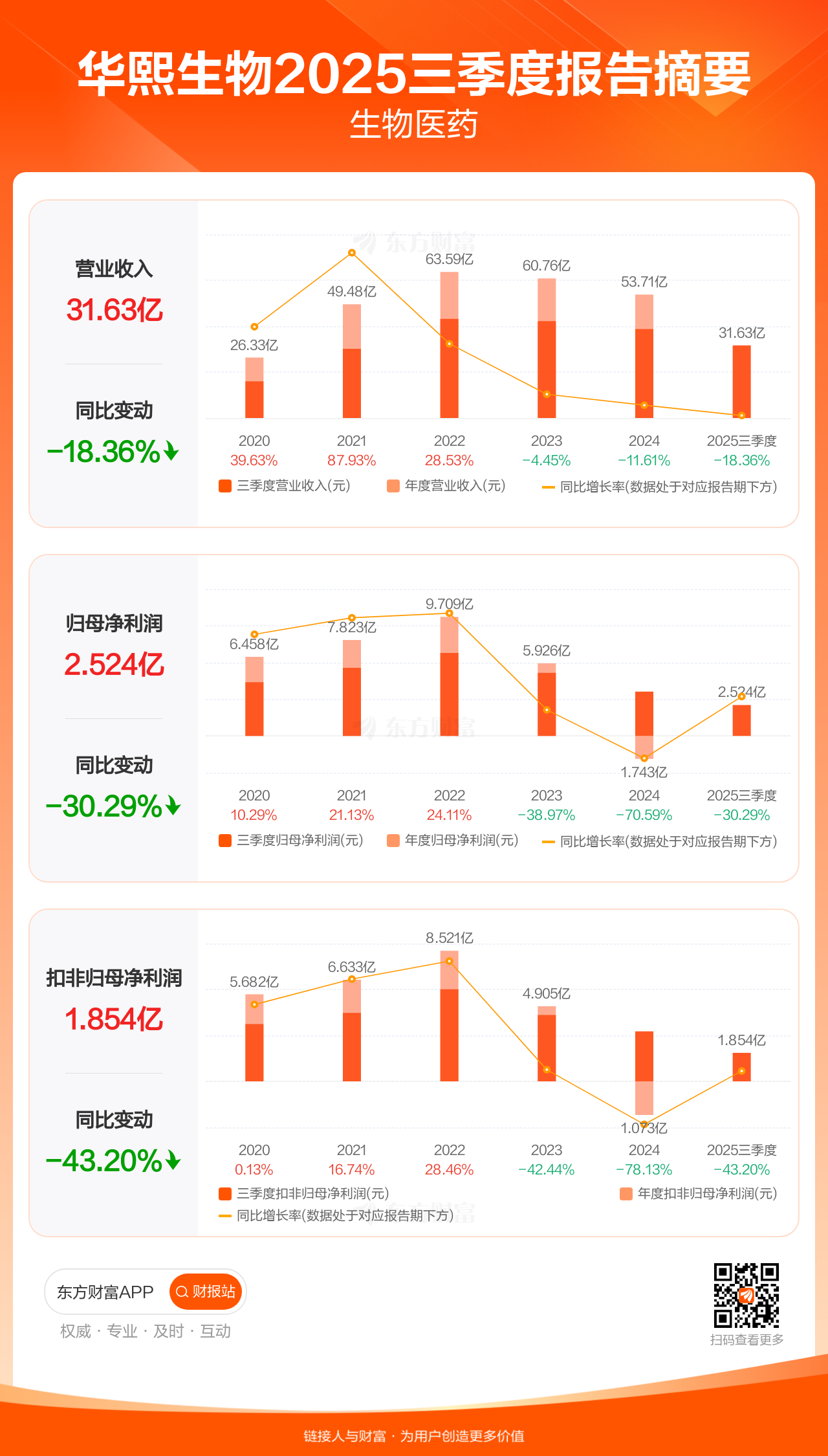 图解财报:华熙生物前三季归母净利润2.52亿元,同比减少30.29%