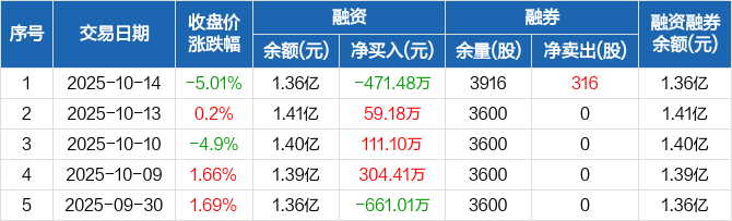 光云科技:融资净偿还471.48万元,融资余额1.36亿元(10-14)