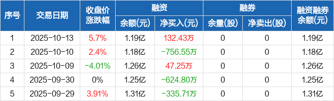丛麟科技:融资净买入132.43万元,融资余额1.19亿元(10-13)