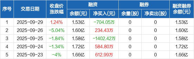 美埃科技:融资净偿还704.05万元,融资余额1.53亿元(09-29)