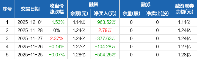 美埃科技:融资净偿还963.52万元,融资余额1.14亿元(12-01)