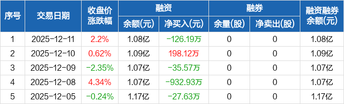 美埃科技:融资净偿还126.19万元,融资余额1.08亿元(12-11)