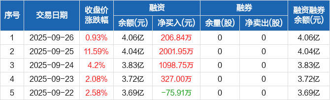 迪威尔:融资余额4.06亿元,创历史新高(09-26)