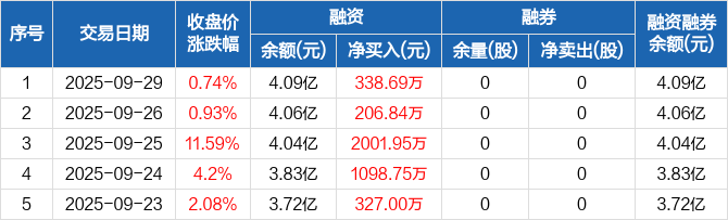 迪威尔:融资余额4.09亿元,创历史新高(09-29)