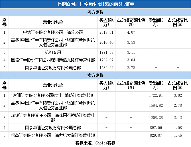 机构现身龙虎榜,华光新材上涨18.34%(12-17)