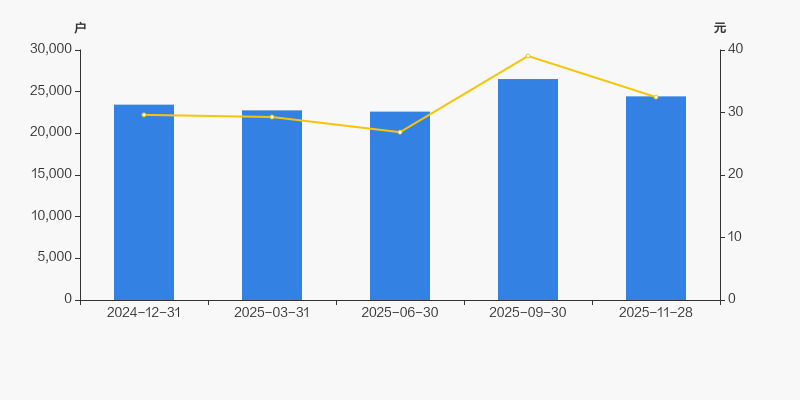 2024年12月31日至今,公司股东户数有所增长,区间涨幅为4.25%。2024年12月31日至2025年11月28日区间股价上涨9.60%。