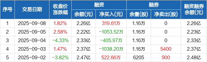 帝奥微:融资净买入319.61万元,融资余额2.26亿元(09-08)