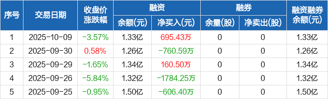 益方生物:融资净买入695.43万元,融资余额1.33亿元(10-09)