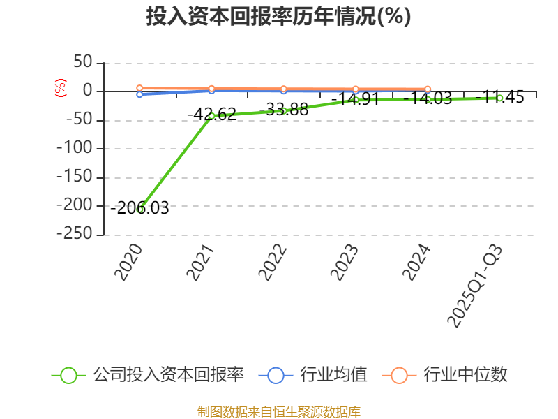 盈利能力方面, 2025年前三季度公司加权平均净资产收益率为-10.42%,同比上升5.91个百分点。公司2025年前三季度投入资本回报率为-11.45%,较上年同期上升5.73个百分点。