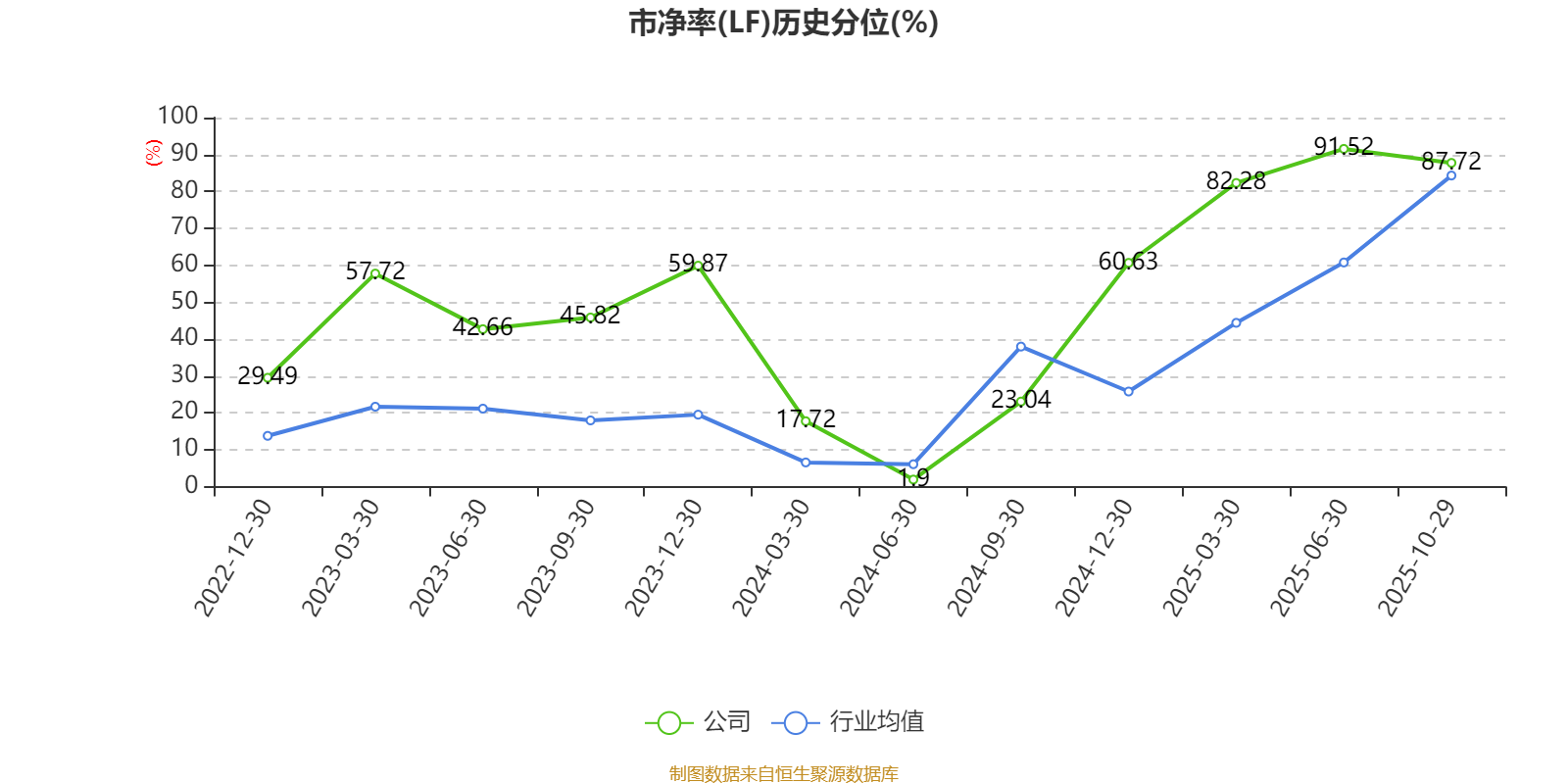 市盈率、市净率为负时,不显示当期分位数,会导致折线图中断。