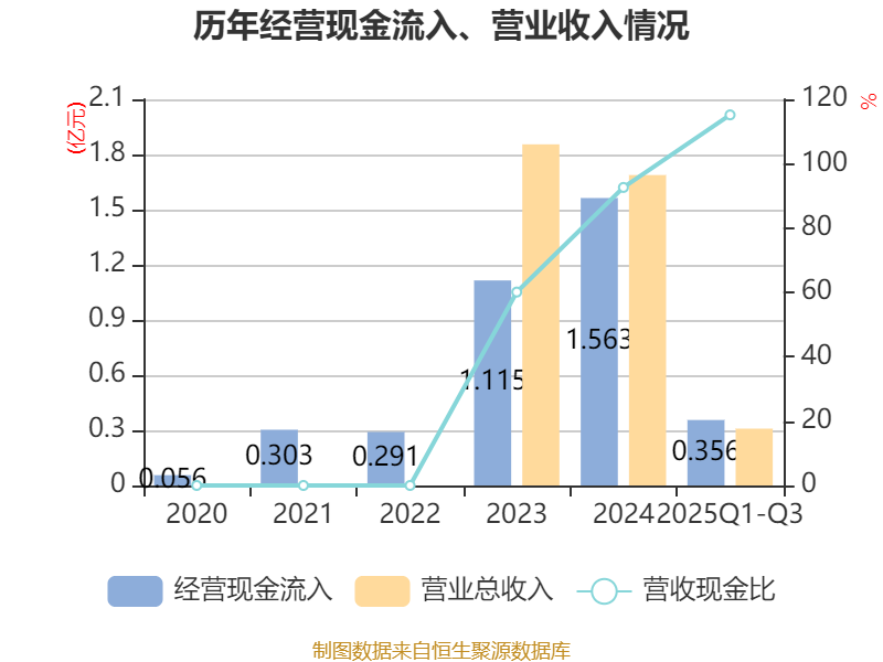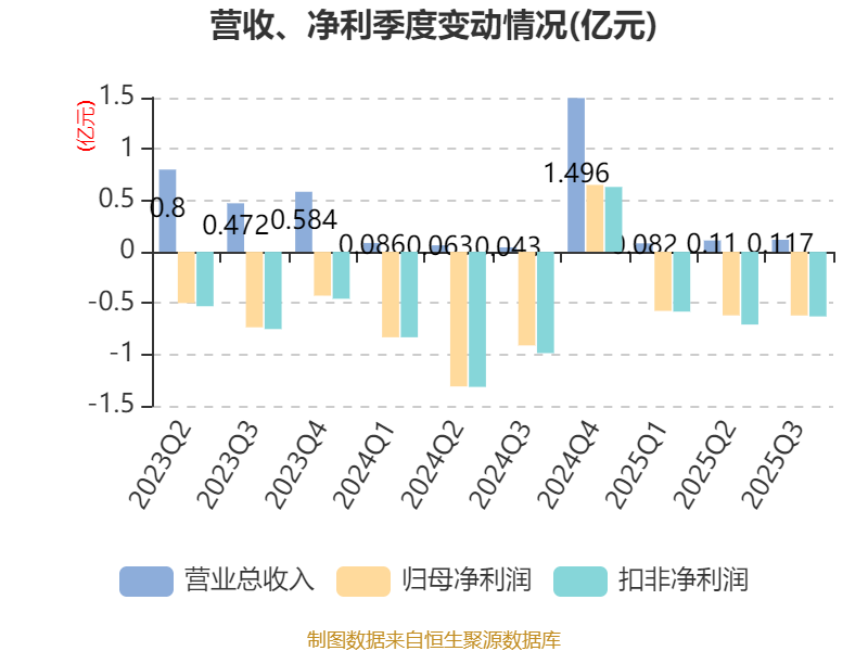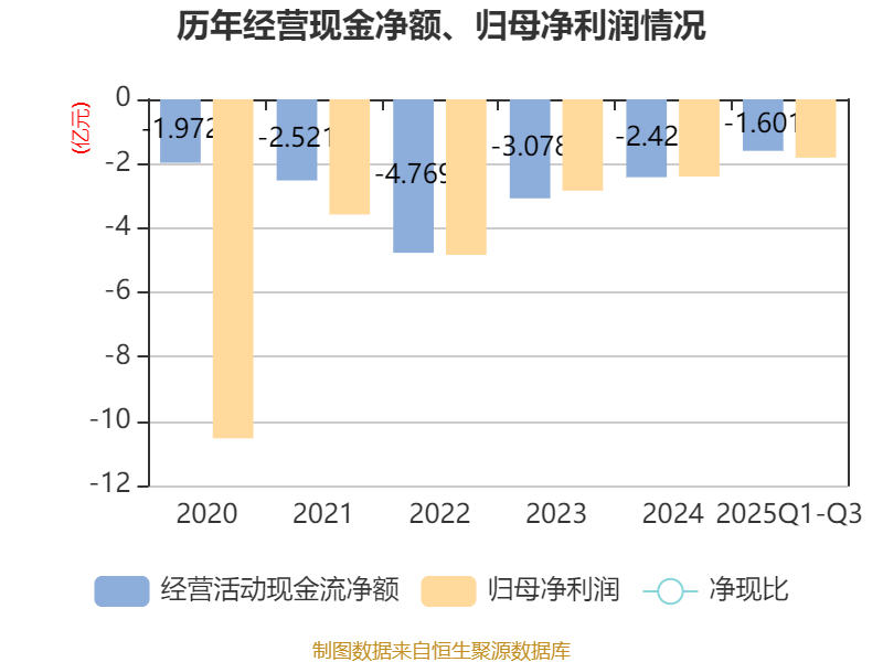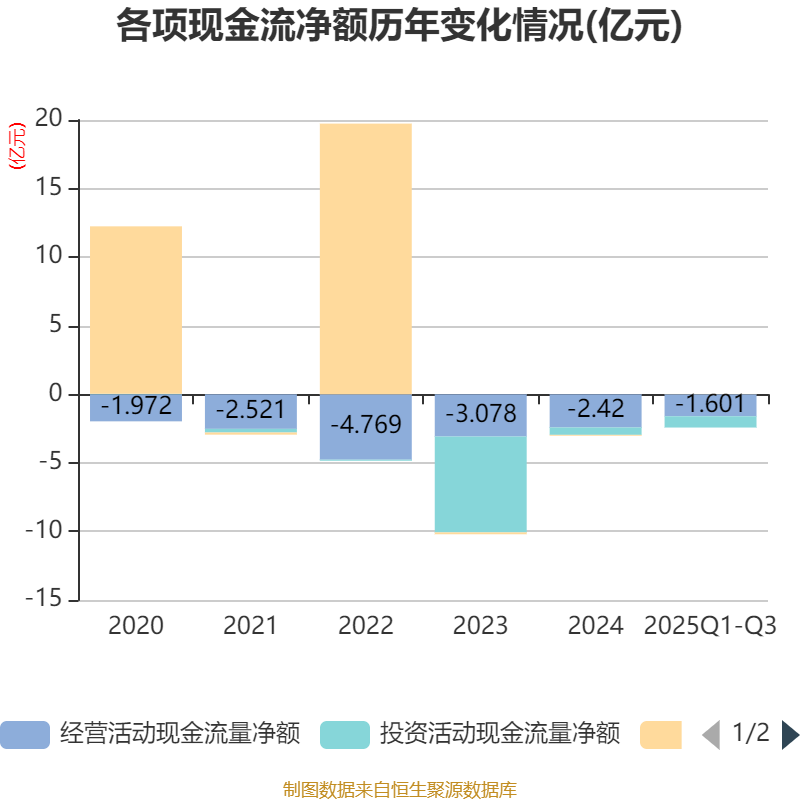2025年前三季度,公司经营活动现金流净额为-1.6亿元,同比增加1.3亿元;筹资活动现金流净额113.04万元,同比增加359.73万元;投资活动现金流净额-8236.23万元,上年同期为-1.82亿元。