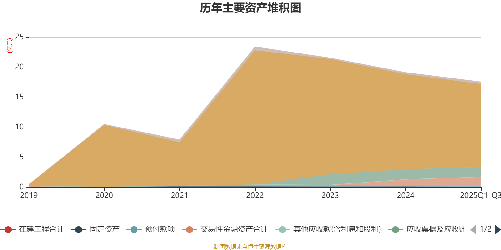 资产重大变化方面,截至2025年三季度末,公司货币资金较上年末减少12.87%,占公司总资产比重下降4.25个百分点;交易性金融资产合计较上年末增加51.04%,占公司总资产比重上升3.4个百分点;应收票据及应收账款较上年末减少1.34%,占公司总资产比重上升0.64个百分点;长期待摊费用占公司总资产的0.6%,上年末为0。