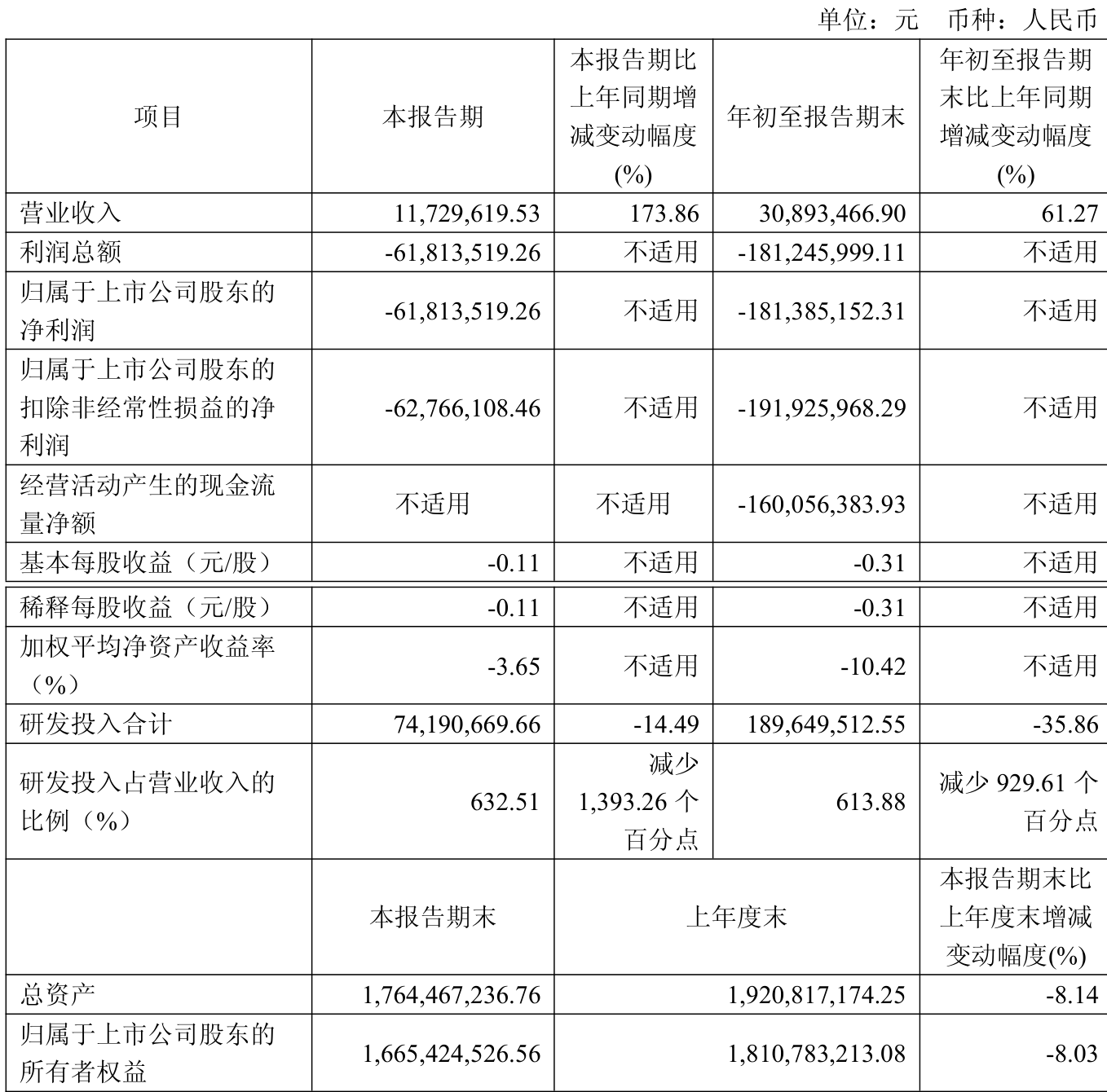 中证智能财讯益方生物(688382)10月30日披露2025年第三季度报告。前三季度公司实现营业总收入3089.35万元,同比增长61.27%;归母净利润亏损1.81亿元,上年同期亏损3.05亿元;扣非净利润亏损1.92亿元,上年同期亏损3.13亿元;经营活动产生的现金流量净额为-1.6亿元,上年同期为-2.9亿元;报告期内,益方生物基本每股收益为-0.31元,加权平均净资产收益率为-10.42%。