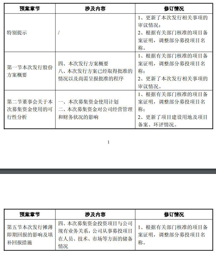 为确保募集资金投资项目名称与公司实际取得项目备案文件保持一致,公司拟对本次募集资金投资项目的名称进行调整,并对预案文件进行了相应修订。