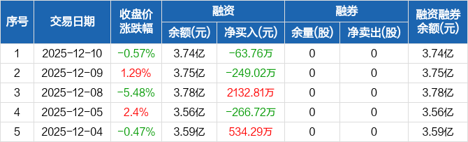 泛亚微透:融资净偿还63.76万元,融资余额3.74亿元(12-10)