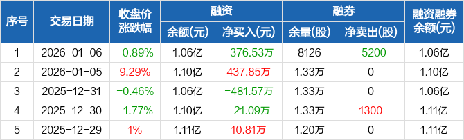 安必平:融资净偿还376.53万元,融资余额1.06亿元(01-06)