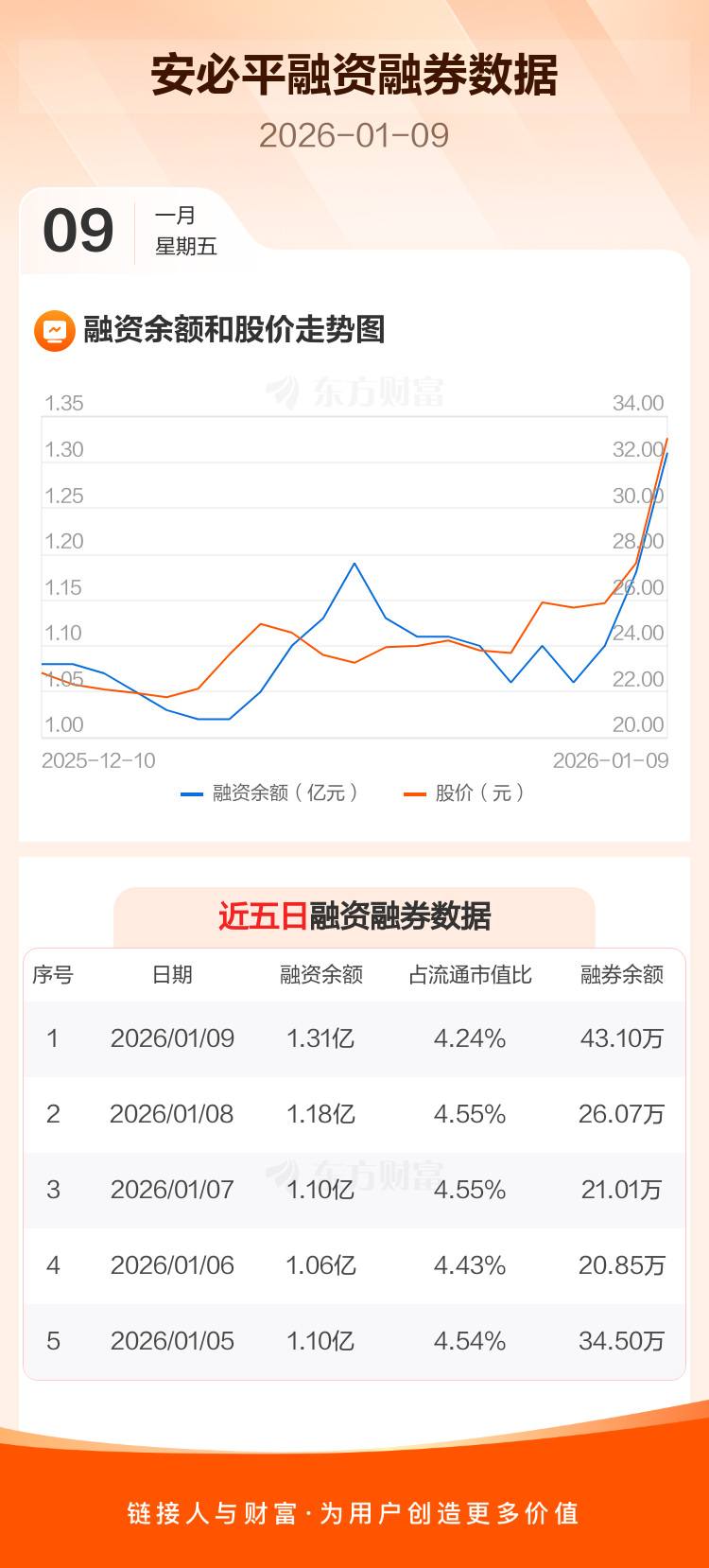 交易所最新数据显示,安必平于2026年1月9日获融资买入5850.32万元,融资偿还4519.57万元,当日融资净买入1330.76万元。目前,该股融资余额1.31亿,占流通市值比例为4.24%。