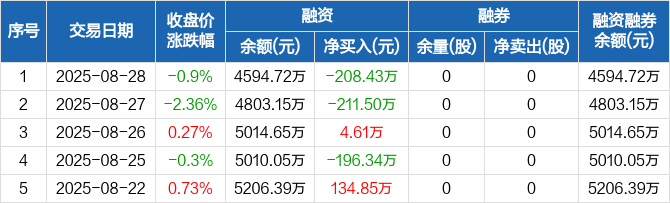 正弦电气:融资净偿还208.43万元,融资余额4594.72万元(08-28)