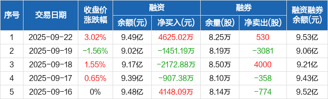 华润微:融资余额9.49亿元,创近一年新高(09-22)
