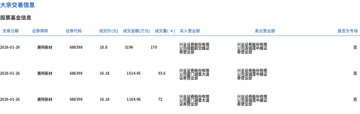 赛特新材今日大宗交易成交335.6万股,成交额5875.41万元