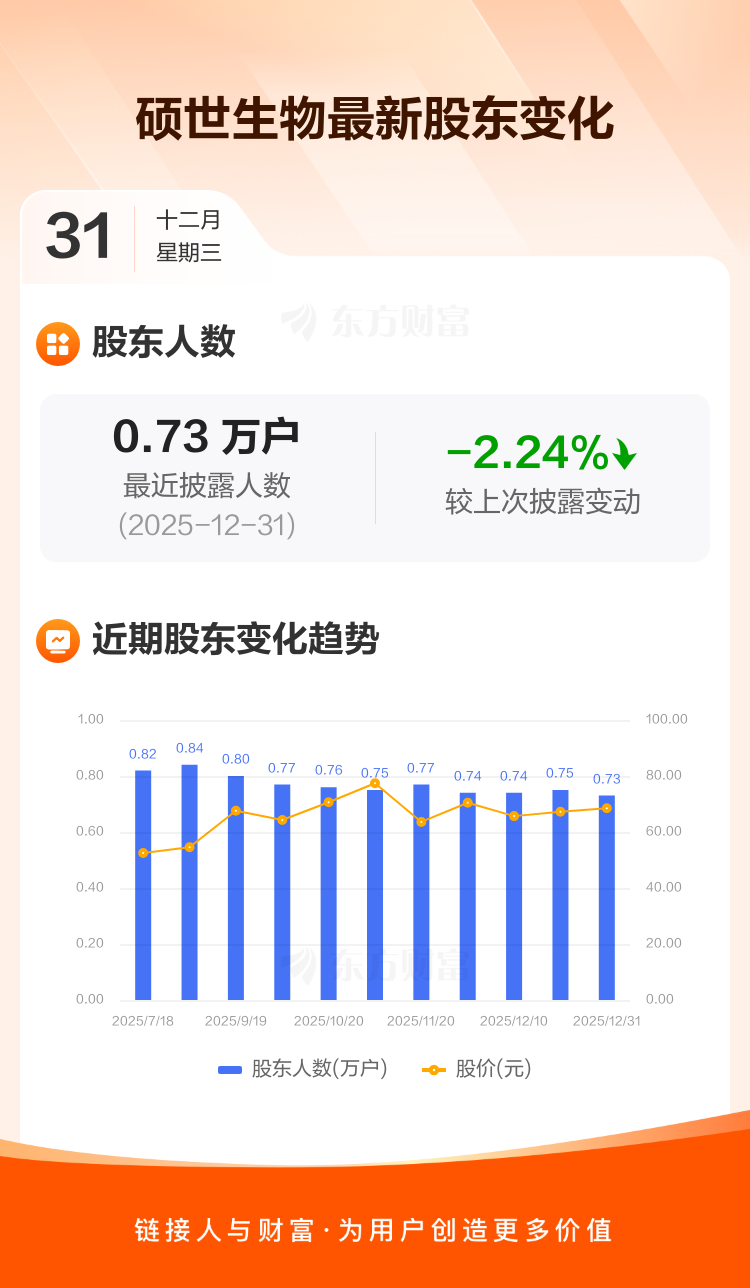 硕世生物:截至12月31日最新股东户数7302户,较上期减少2.24%