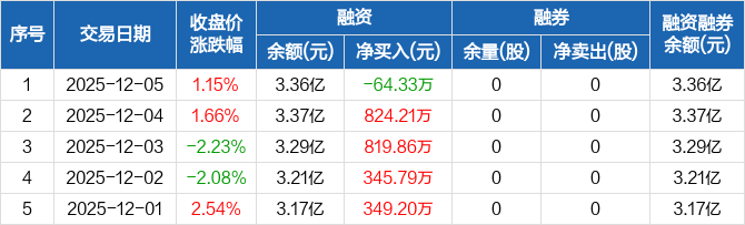 路维光电:融资净偿还64.33万元,融资余额3.36亿元(12-05)