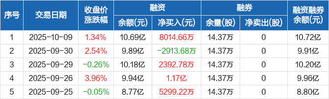 汇成股份:融资余额10.69亿元,创历史新高(10-09)
