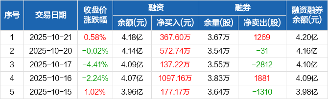中信博:连续6日融资净买入累计2503.02万元(10-21)