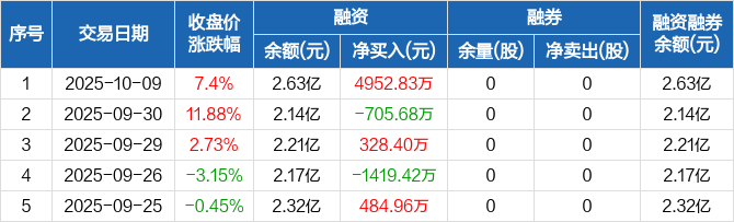 恒烁股份:融资余额2.63亿元,创历史新高(10-09)